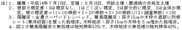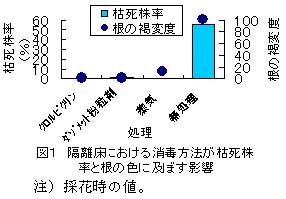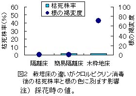 図2 栽培床の違いがクロルピクリン消毒後の枯死株率と根の色に及ぼす影響
