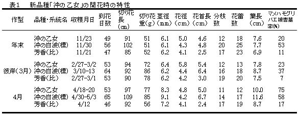 表1 新品種「沖の乙女」の開花時の特性