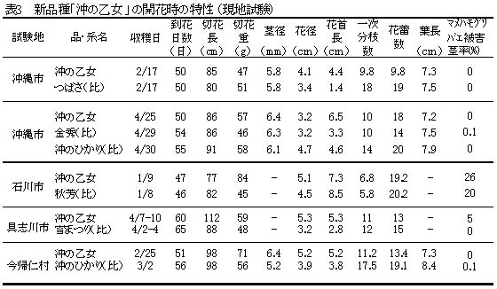 表3 新品種「沖の乙女」の開花時の特性(現地試験)