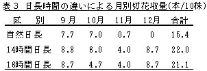 日長の短い9月から3月まで長日処理すれば休眠を防止できる(表2)。