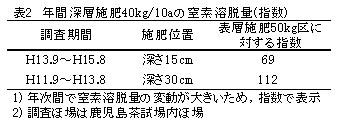 表2 年間深層施肥40kg/10aの窒素溶脱量(指数)