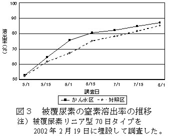 かん水により土壌水分を適正に保つことで、被覆尿素の窒素溶出は無かん水に比べて順調に進む(図3)。