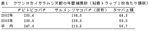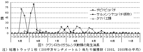 表1 クワシロカイガラムシ天敵の年間捕獲数(粘着トラップ1枚当たり頭数)