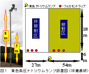図1 黄色高圧ナトリウムランプ設置図(球磨農研)