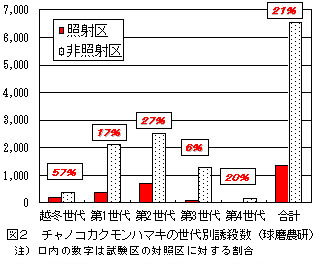 表1 チャノコカクモンハマキの非照射区に対する巻葉数の減少率(球磨農研)