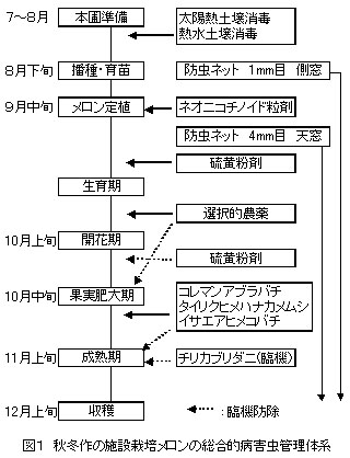 研究課題名:施設メロンの病害虫防除技術の体系化と実証 課題ID:07-05-04-*-19-03 予算区分 :IPM 研究期間 :1999〜2003年度