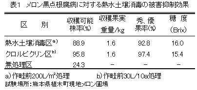 表1 メロン黒点根腐病に対する熱水土壌消毒の被害抑制効果