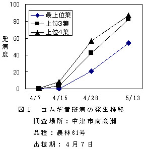 図1 コムギ黄斑病の発生推移(中津市南高瀬)