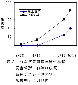 図2 コムギ黄斑病の発生推移(野津町広原)