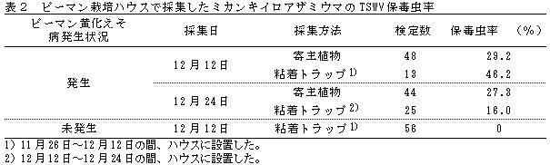 表2 ピーマン栽培ハウスで採集したミカンキイロアザミウマのTSWV保毒虫率