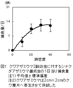 図1 クワアザミウマ2齢幼虫に対するシナクダアザミウマ雌成虫の1日当たり捕食量