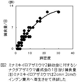 図2 ミナミキイロアザミウマ2齢幼虫に対するシナクダアザミウマ雌成虫の1日当たり捕食量