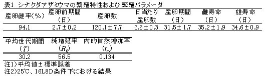 表1 シナクダアザミウマの繁殖特性および繁殖パラメータ