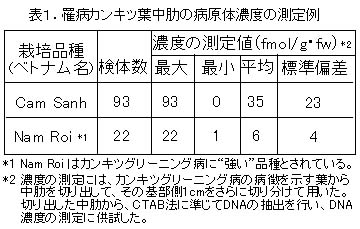 表1 罹病カンキツ葉中肋の病原体濃度の測定例