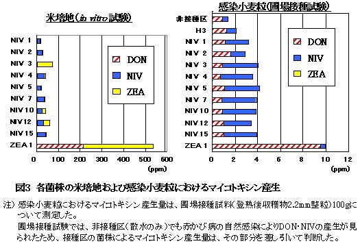 西日本以外では分布するNIV産生型菌の病原力等について情報がないので、病原力の強いNIV産生菌株の野外における使用には注意が必要である。