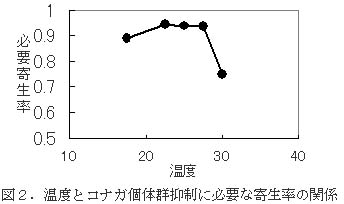 図2 温度とコナガ個体群抑制に必要な寄生率の関係