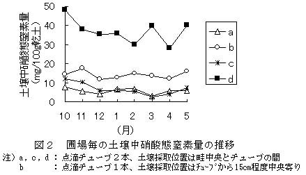圃場によっては、窒素無機化量の著しく高いものや低いものがあるので、栽培期間中は1〜2ヶ月毎に土壌診断を行い、土壌中無機態窒素量を適正に保つ。