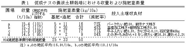 表1 促成ナスの養液土耕栽培における収量および施肥窒素量