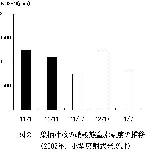図2 葉柄汁液の硝酸態窒素濃度の推移(2002年、小型反射式光度計)
