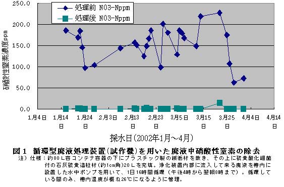 図1 循環型廃液処理装置(試作機)を用いた廃液中硝酸性窒素の除去