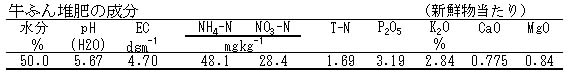 本試験で用いた牛ふん堆肥の成分は以下のとおりであるが,大幅に成分が異なる場合は混合割合の検討が必要である。