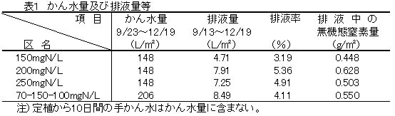 - かん水量に対する排液率は約5%と少なく、排液に含まれる無機態窒素量は0.55g/m2程度である(表1)。