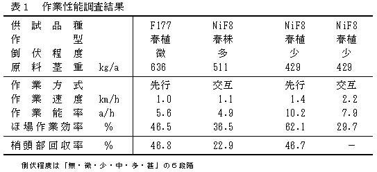 表1 作業性能調査結果