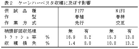 表2 ケーンハーベスタ収穫に及ぼす影響