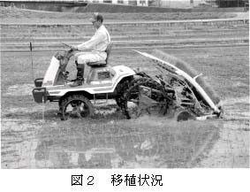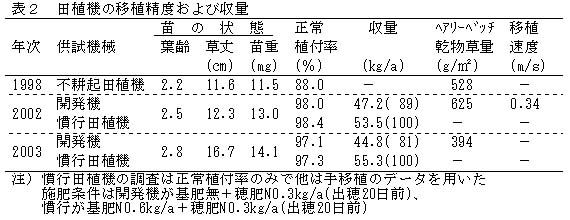 正常移植率は97〜98%であり、これは慣行田植機と同程度である(表2)。