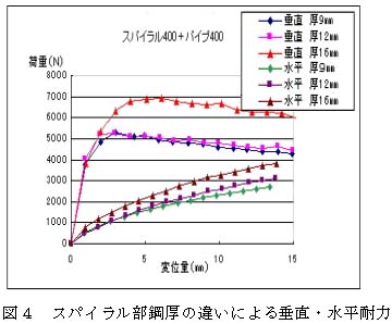 図4 スパイラル部鋼厚の違いによる垂直・水平耐力