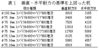 表1 垂直・水平耐力の基準を上回った杭