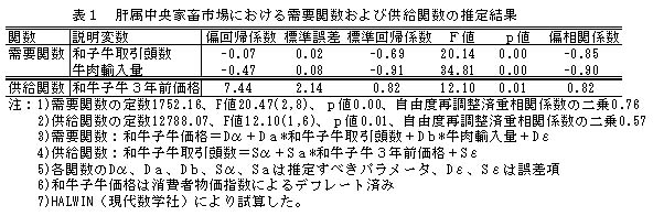 表1 肝属中央家畜市場における需要関数および供給関数の推定結果