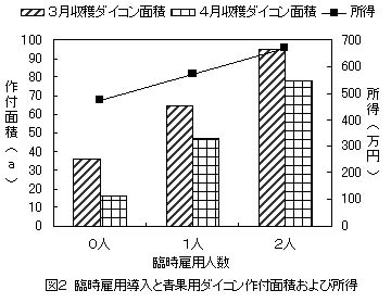 図2 臨時雇用導入と青果用ダイコン作付け面積および所得