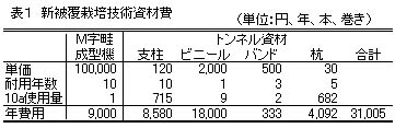 表1 新被覆栽培技術資材費