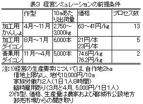表3 営農シミュレーションの前提条件
