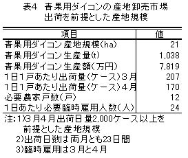 表4 青果用ダイコンの産地卸売市場出荷を前提とした産地規模