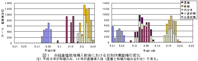 図1 水稲直播栽培導入前後における日別作業面積の変化