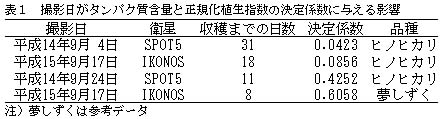 表1 撮影日がタンパク質含量と正規化植生指数の決定係数に与える影響