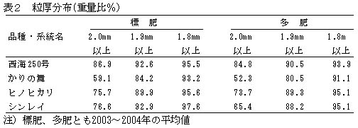 玄米の外観品質は優れ、粒張りが良く、粒厚も厚く、粒揃いも良い(表1、表2)