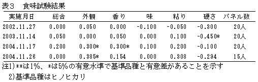 食味は「ヒノヒカリ」並に優れる良食味である(表3)。