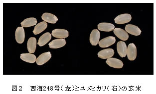 図2 西海248号(左)とユメヒカリ(右)の玄米