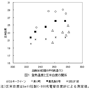 図1 登熟温度と玄米白度の関係