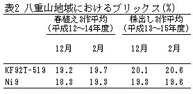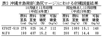 表3 沖縄本島南部(島民マージ)における収穫調査結果
