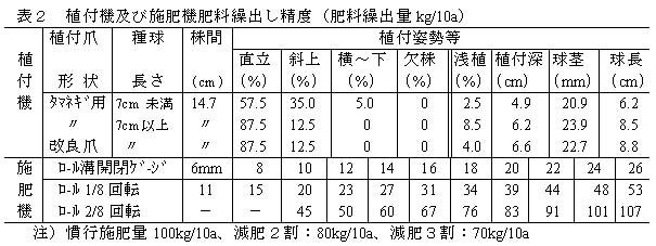 - 植付機、ラッキョウ、側条施肥機、環境保全
