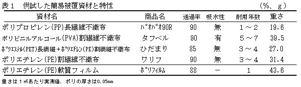 表1 供試した簡易被覆資材と特性