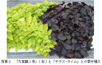茎葉が濃い紫色の観賞用カンショ新品種「九育観1号」