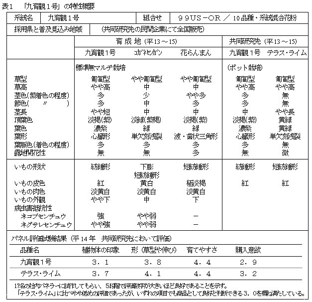 表1 「九育観1号」の特性概要