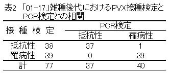 表2 「01-17」雑種後代におけるPVX接種検定とPCR検定との相関