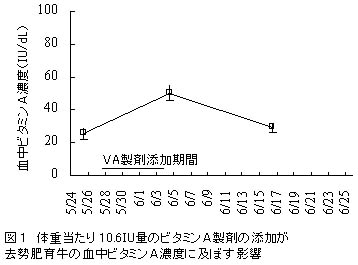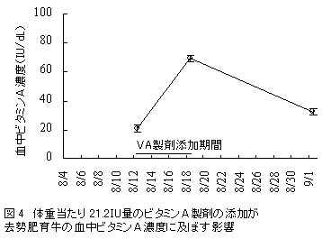 図4 体重当たり21.2IU量のビタミンA製剤の添加が去勢肥育牛の血中ビタミンA濃度に及ぼす影響