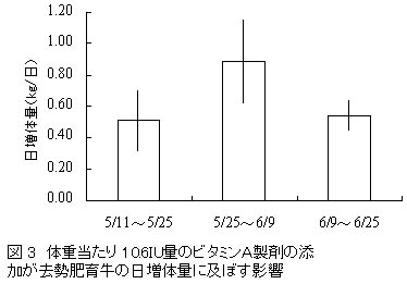 図3 体重当たり10.6IU量のビタミンA製剤の添加が去勢肥育牛の日増体量に及ぼす影響